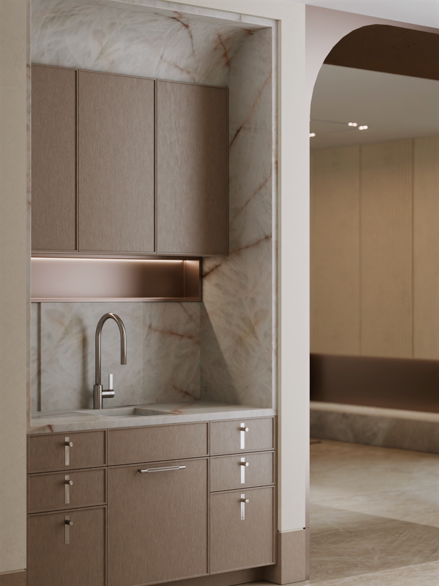 This kitchen combines modern functionality with luxurious finishes. Every element was carefully considered to achieve a seamless blend of practicality, elegance, and visual harmony.
